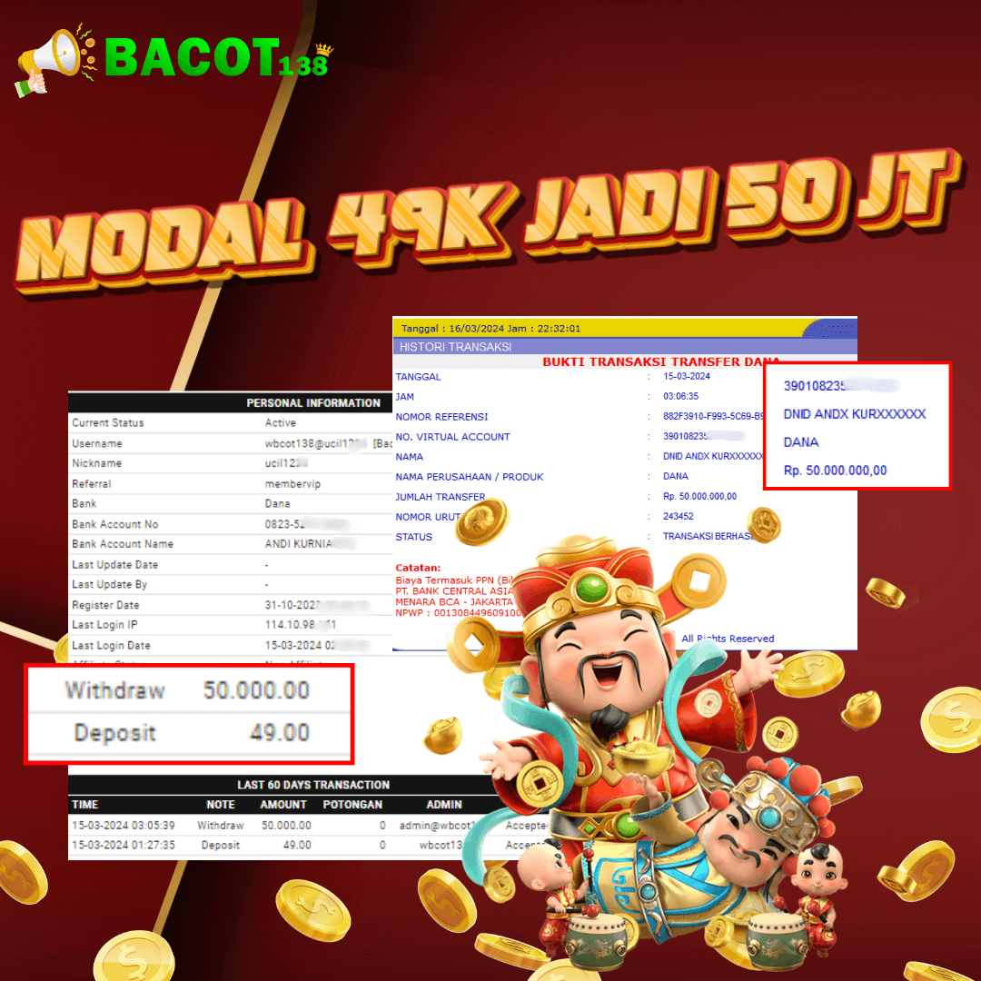Bacot138 salah satu penyedia situs game paling unggul di indonesia karna kami memiliki kinerja saat proses betting yang terbaik , presentase tiap kategori permainan memiliki angka hingga 96% keatas sehingga para pemain memilih apapun jenis game akan mempunyai tingkat kemenangan yang cukup bagus apalagi di tambah dengan akurasi data rtp yang kami juga sediakan secara gratis untuk kalian akses jika hendak bermain betting di situs bacot138 official di indonesia.